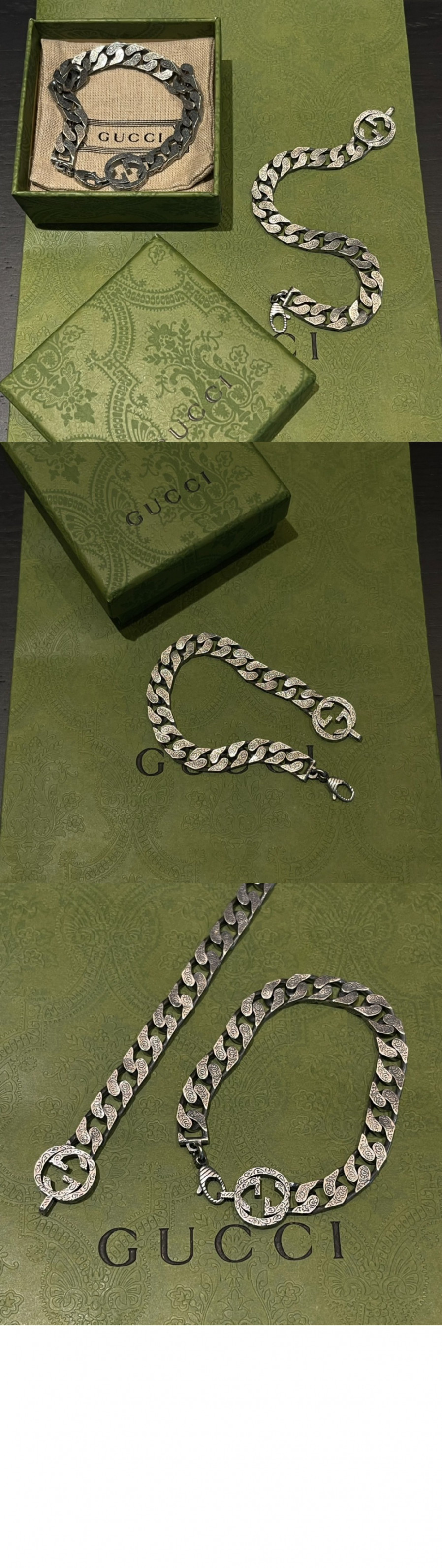 구찌 인터로킹 G 실버 체인 팔찌 454285
