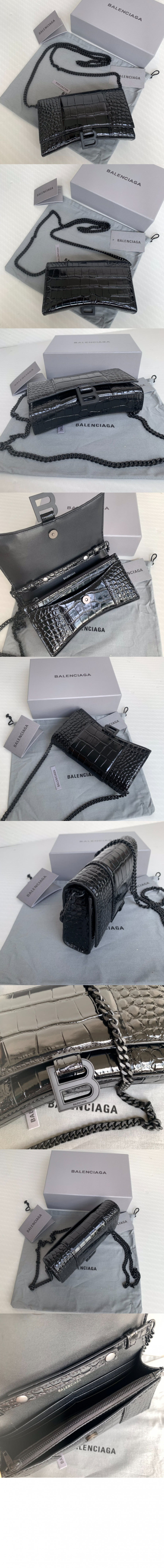 발렌시아가 아워글래스 크로커다일 엠보싱 월렛 온 체인 656050