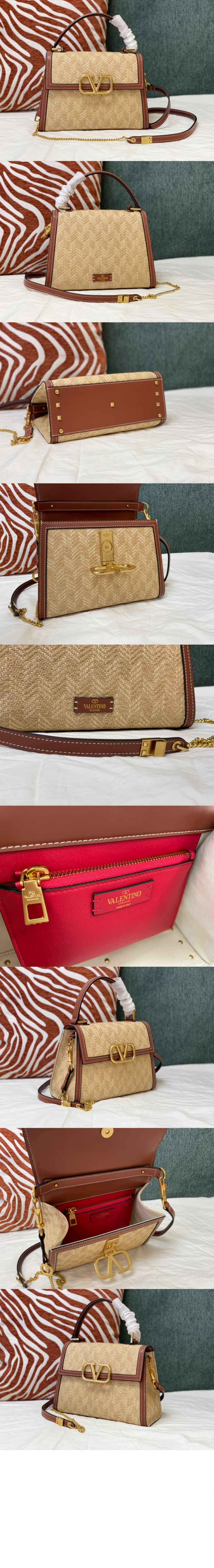발렌티노 브이슬링 라피아 탑핸들백 스몰