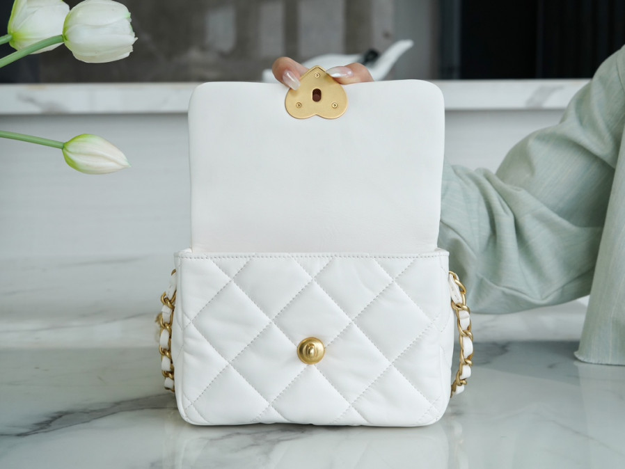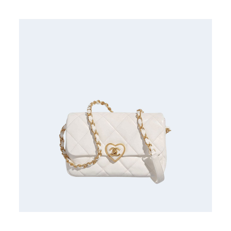 샤넬 스몰 플랩백 램스킨 플렉시 & 골드 메탈 화이트