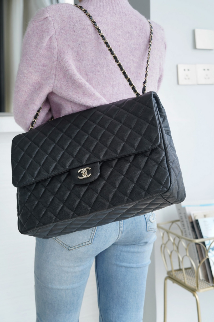 샤넬 클래식 맥시 핸드백 캐비어 은장 크기: 22 x 33 x 10cm
