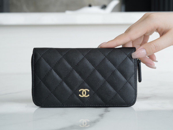 샤넬 클래식 롱 플랩 지갑 캐비어 금장 A31509