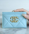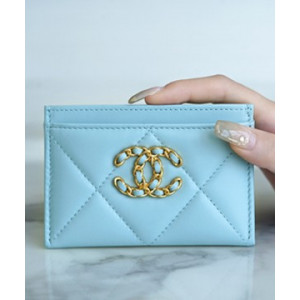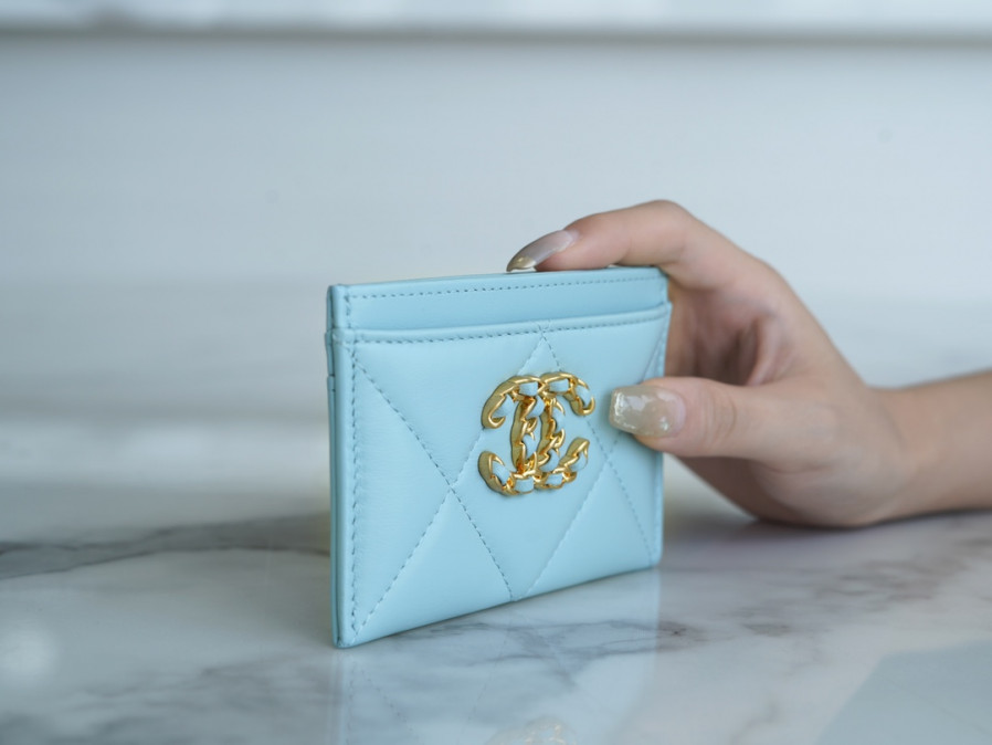 샤넬 19 플랩 카드지갑 램스킨 금장 소라 AP1790