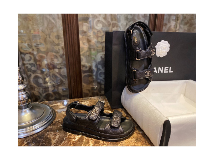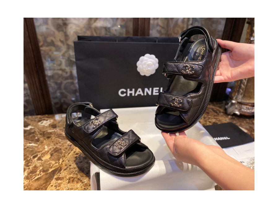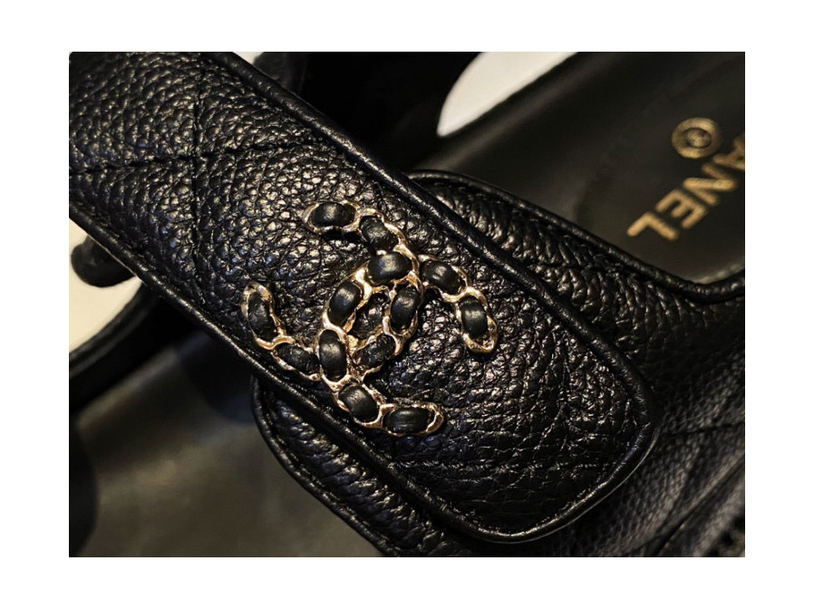샤넬 레더 벨크로샌들 통굽가죽 스트랩샌들 G35927
