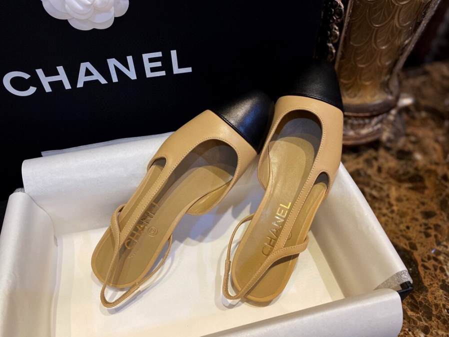 샤넬 투톤 플랫 슬링백