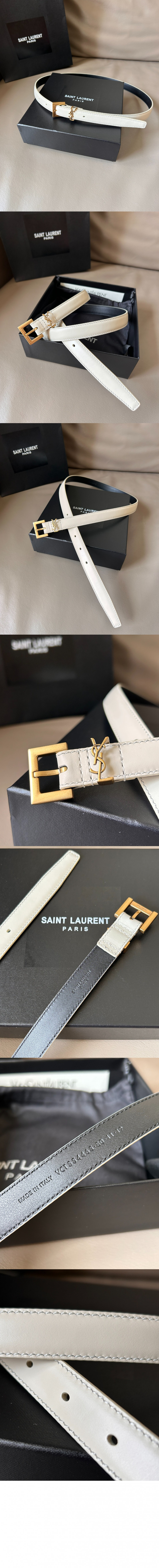 생로랑 래커 처리된 가죽 소재의 CASSANDRE 스퀘어 버클 장식 얇은 벨트 554465 > 하이엔드 여성관