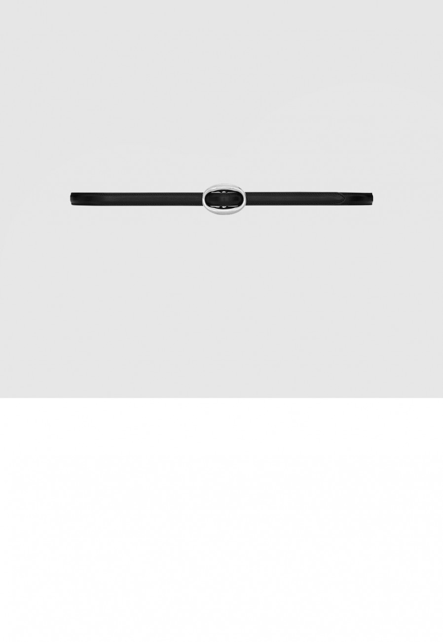 생로랑 부드러운 가죽 소재의 타원형 버클 슬림 벨트 756409