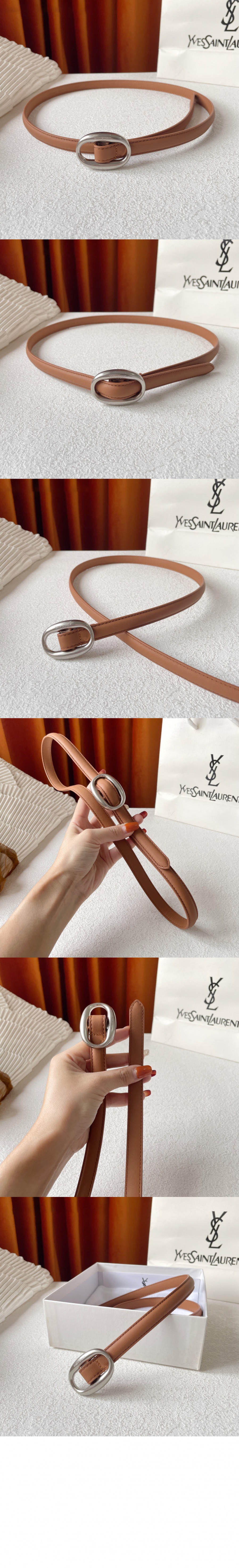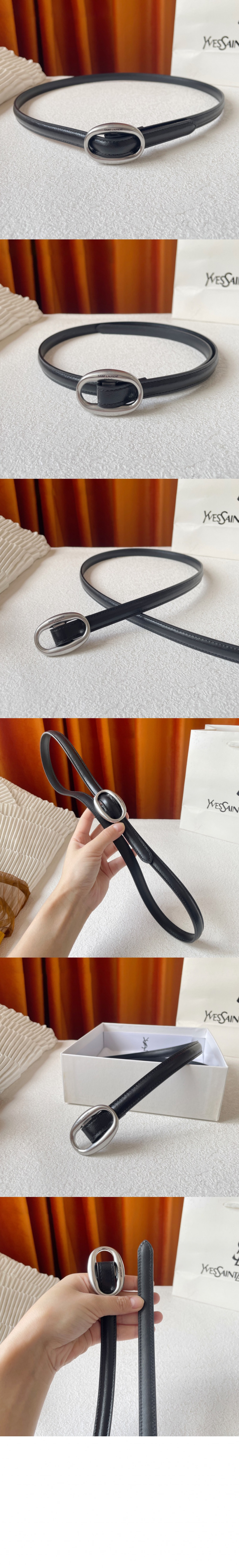 생로랑 부드러운 가죽 소재의 타원형 버클 슬림 벨트 756409 > 하이엔드 여성관