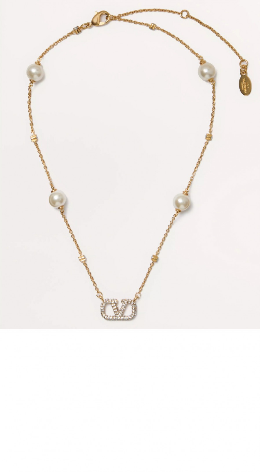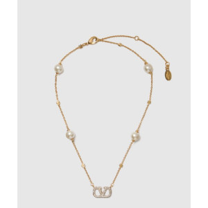 발렌티노 크리스털 및 진주 장식 브이로고 시그니처 메탈 네크리스
