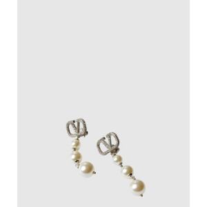 발렌티노 진주 장식 브이로고 시그니처 이어링
