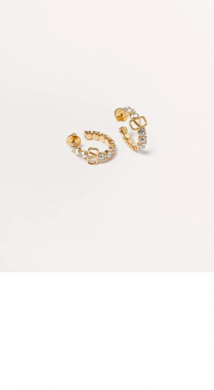 발렌티노 크리스털 장식 미니 브이로고 시그니처 메탈 이어링