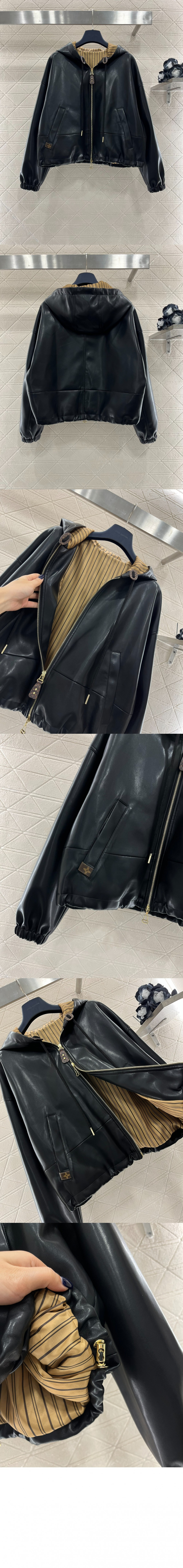 루이비통 레더 후디드 재킷