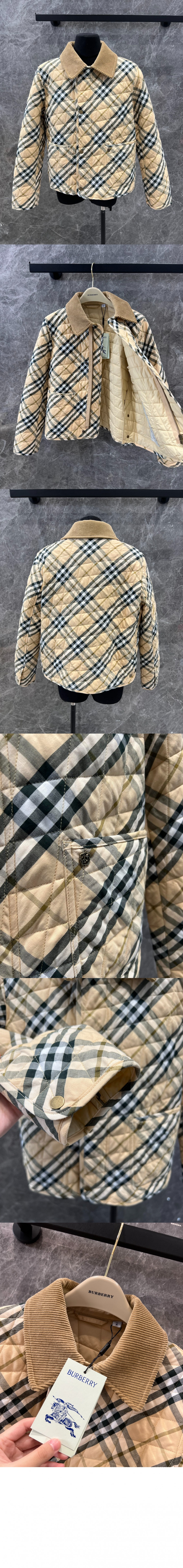 버버리 크롭 체크 퀼팅 반 재킷