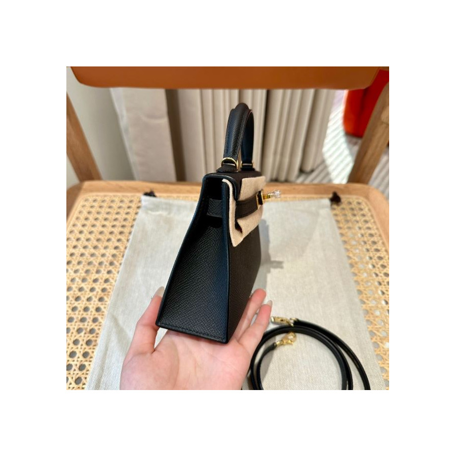에르메스 미니 켈리2 블랙 앱송 금장 19cm