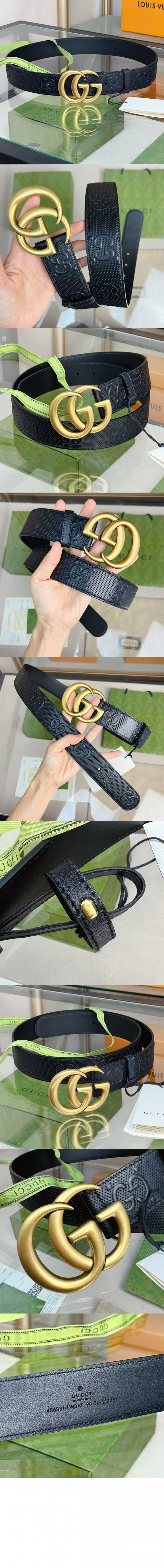 구찌 GG 마몽 엠보스 레더 벨트 406831