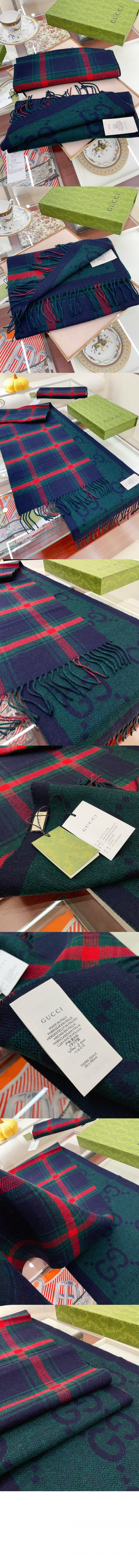 구찌 GG 스코틀랜드 체크 울 스카프 715385